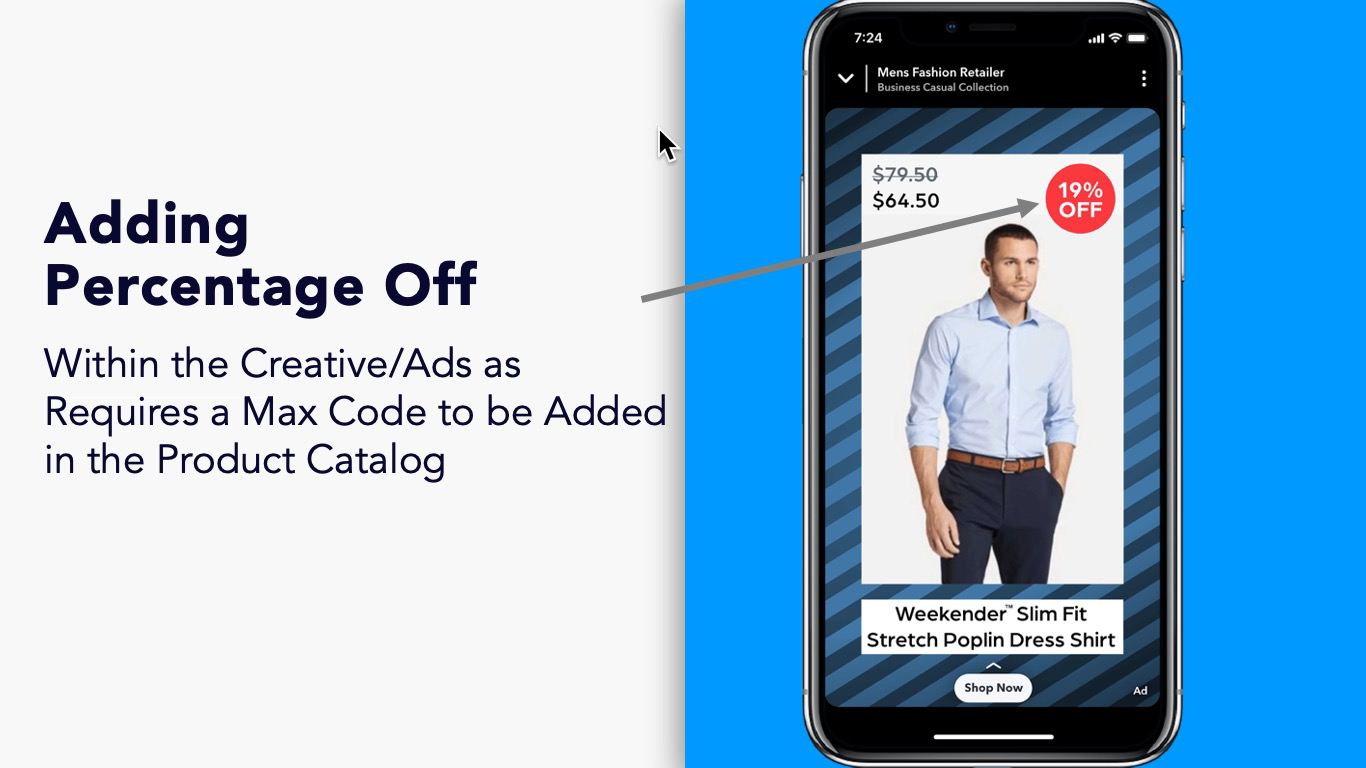 Eddie Bauer currently wants to display a % Off button in all their ads when the product’s Sale Price is lower than the normal Price.